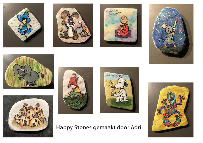 ( zie onder aan artikel voor een aantal voorbeelden van de Happy Stones van Adri )